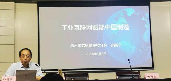 6月9日下午,由科技产业处、电气与汽车工程学院联合举办的“工业互联网赋能中国制造”主题讲座在行政楼315报告厅举行,此次讲座特邀扬州市老科协高校分会会长许晓宁教授主讲,电气与汽车工程学院全体教师与部分学生代表聆听了讲座。