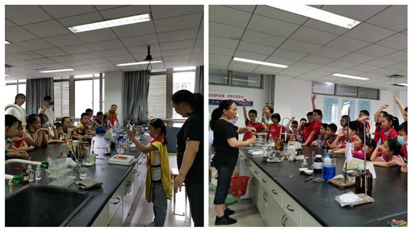 七月的风吹动着热情,天真的脸洋溢着欢笑。近日,生物与化工工程学院实验室迎来了一群聪明可爱、活力四射的小学生。学院实验室主任王征远、学工党支部书记吴美瑾、实验室老师薛梅以及部分学生代表组成了志愿服务队,为这支“大手牵小手”的队伍开启了一场“神奇化学之旅”。