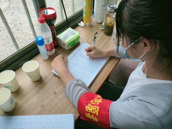 随即,丁雯雯和她的妈妈、姐姐也一起投身到了抗疫志愿服务当中。她们的工作内容主要是登记过往车辆、出入人员信息和测量体温,协助完成全员核酸检测,核对录入信息、维持现场秩序等,工作繁重。丁雯雯早上8点前到达采样点,全程几乎没有时间吃饭、喝水,甚至上厕所,直到下午4点多才能回家休息。遇到老弱病残的市民,她会细致地做好登记,安排上门检测,遇到着急的群众她会耐心地进行劝解,维持检测工作顺利进行。丁雯雯的工作结束时,她的爸爸常常还坚守在他的岗位上,一家人只能擦肩而过。