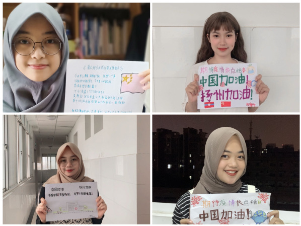 连日来,在校留学生目睹和感受了学校、学院老师们的爱心帮助和齐心抗疫,倍感安全与温暖,他们纷纷拿起纸笔书写暖心祝福,用自己不太熟练的汉语说出心里话,为扬州加油,为中国加油,表达了他们对战“疫”必胜的坚定信心。班会上,来自柬埔寨、印尼、老挝、马尔代夫的祥国松、孙晓梅、刘清怡、郭晶兰等同学向大家朗诵并展示了自己的作品;来自印尼的孙晓梅同学深情地娓娓道来:“致我亲爱的老师、志愿者们,谢谢你们的辛勤工作。因为你们,我们拥有了健康和希望。因为你们,我明白了无私奉献的意义。加油,我可爱的校园!加油,我热爱的扬州!”大家听后深受感动,用热烈的掌声在“云上”表达了对学校、学院最诚挚的感谢。