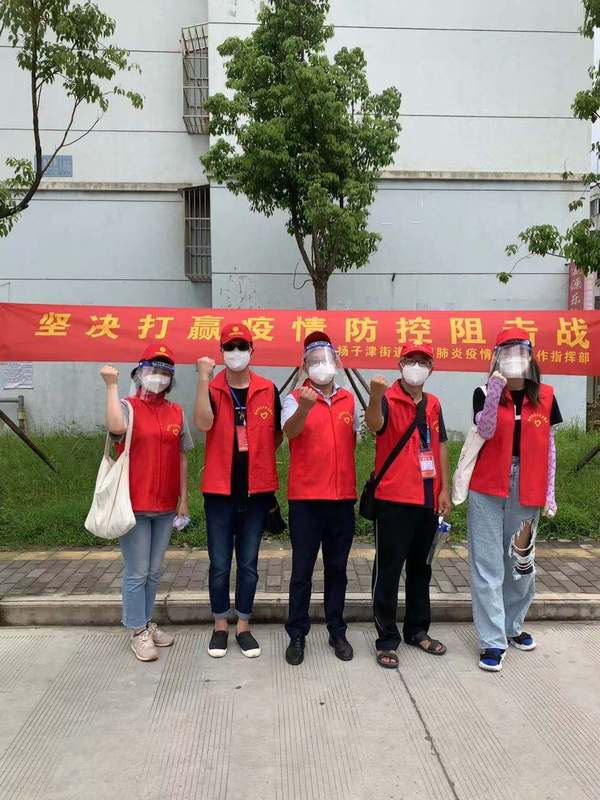 此外,刘苏闽、程爱民、韦林洪、孙长花、郭静、刘岳树、张虞婷、焦予斯等多位老师还响应扬州市防控办号召,下沉一线就地成为志愿者。他们积极参与所在小区的核酸检测情况排查、居民生活物资派送以及每日值班等工作。
