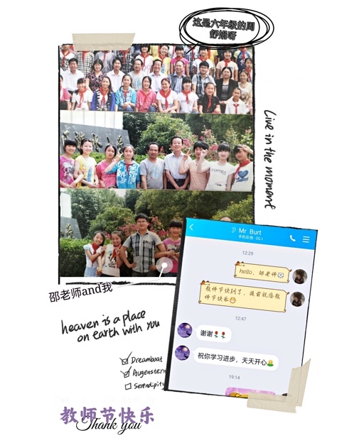 活动一经发布,就得到了同学们积极的响应。大家找出尘封已久的旧照片,回忆起曾经的求学经历。学前1907班陶宇岚问候了在实习过程中耐心指导自己的幼儿园实习带班老师。学前2004班周舒娟同学,梳理了自己成长道路上得到的老师们的指点和鼓励,一条条加油鼓劲的信息,一张张青春洋溢的照片汇聚在一起,更加坚定了她继续学好专业的决心和信心,她表示将来也一定要成为像他们一样的好老师。17学前班的苏丽艳•阿不拉江翻出幼儿园毕业照,问候了求学道路上的第一位恩师,骄傲地跟老师说自己将来也要成为一名学前教师。