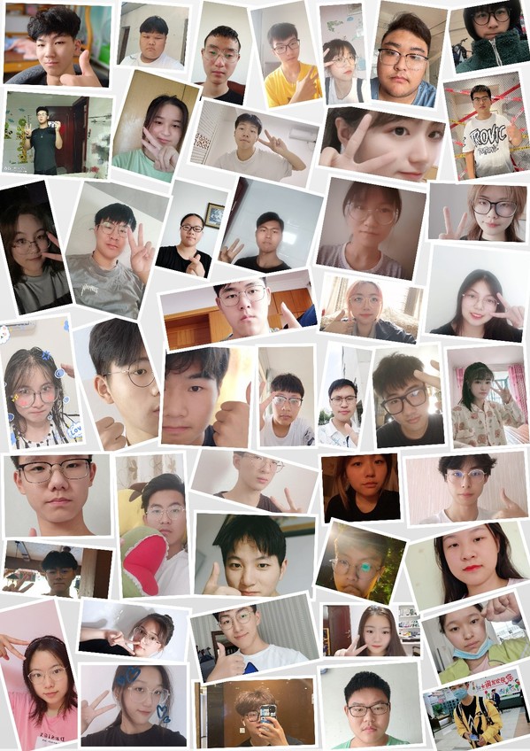同时,班主任利用新生上传的照片制作了班级线上报到“云合影”拼图,发布在班级QQ群,为新生们留下难忘的报到“瞬间”,充满仪式感。新生们一张张带着“加油”“比心”“点赞”手势的照片,聚拢在一起,表达了学院全体新生对疫情特殊时期的感慨以及对入学和未来的热切期待。