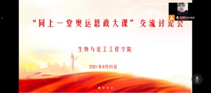 9月25日下午,生物与化工工程学院全体学生通过“人民网+”客户端准时在线收看了“同上一堂奥运思政大课”。许海峰等13名奥运健儿主讲的内容在学生中引起热烈反响,他们奋力拼搏,为国争光的故事深深打动着同学们。