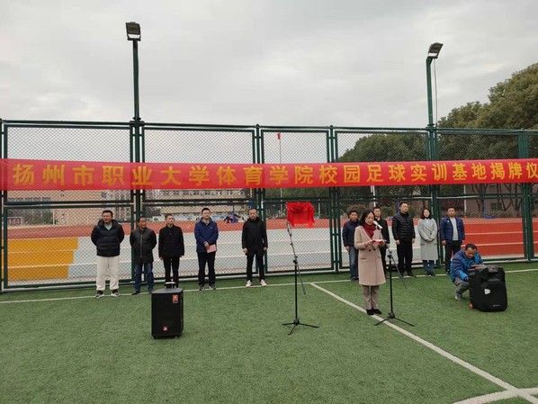 揭牌仪式上,周康介绍了蜀岗-瘦西湖风景名胜区各学校的基本情况、办学特点以及校园足球的开展情况,并对我校体育学院足球专项师资的教学水平、竞训能力表示了肯定,对足球实训基地的发展给予了厚望。