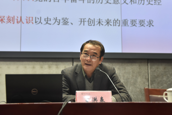 12月20日,根据市委统一安排,学习贯彻党的十九届六中全会精神市委宣讲团宣讲报告会在我校举行。市委宣讲团成员、市委宣传部原副部长、市委讲师团原团长、市委党史学习教育巡回指导组组长夏洪春作宣讲报告。纪委书记黄华明主持报告会并讲话。