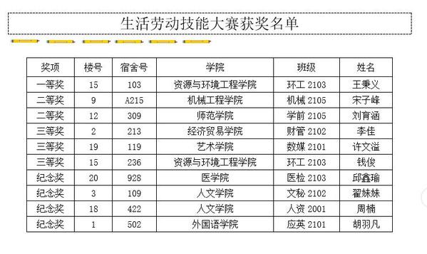 此次文明宿舍创建评比和生活技能大赛,充分展现了当代大学生的朝气活力和个性特征,是我校劳动教育和宿舍管理相融合的一次创新,营造了踏实勤劳、积极向上的校园氛围。