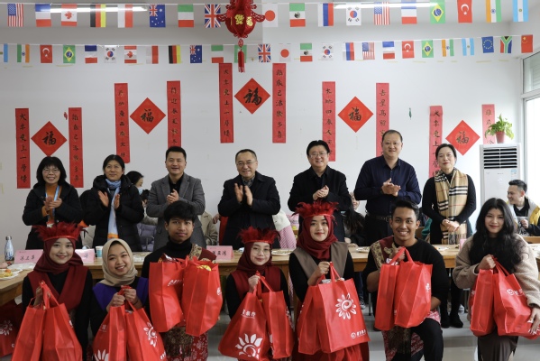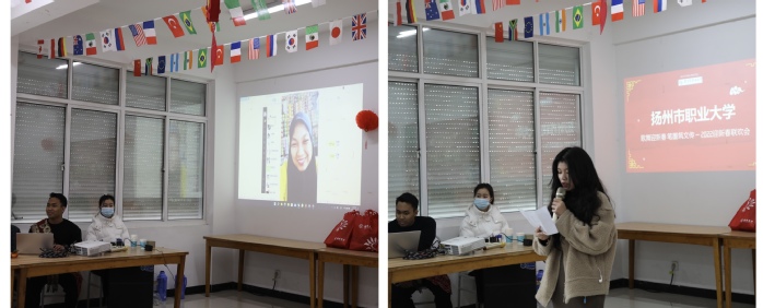 慰问现场,留学生哈林与父母视频连线,远在印度尼西亚的爸爸妈妈表示,他们特别想念儿子,十分感谢中国,感谢学校老师们对哈林的教育与帮助。他们跟着哈林用中文祝大家新年快乐,云端送祝福,赢得一阵阵掌声。留学生代表、来自老挝的刘清怡说到,这是她来中国学习并在学校度过的第三个寒假,每次都能感受到浓浓的中国年味儿。她表示,学校无微不至的关照让身在异乡的她有着如同被家人关心一般的温暖,自己一定会积极配合学校疫情常态化防控工作,自觉做好自身防护,合理规划假期的生活与学习。