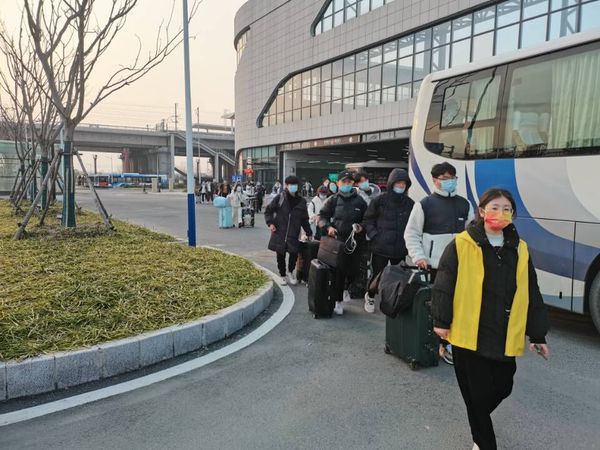春风化疫时,学子归校日。春天的脚步离我们越来越近,扬州的疫情防控工作在全市人民的共同努力下持续向好,我校也如期迎来了开学日。2月19日是学生分批返校的第一天,为贯彻落实市疫情防控工作要求,保障2022年春季开学返校工作平稳、顺利,引导来自全国各地的同学安全有序分批返校开学,团委牵头组建的“团团”疫情防控志愿服务队展现新时代扬城青年的责任与担当,为学生安全有序抵扬返校保驾护航。