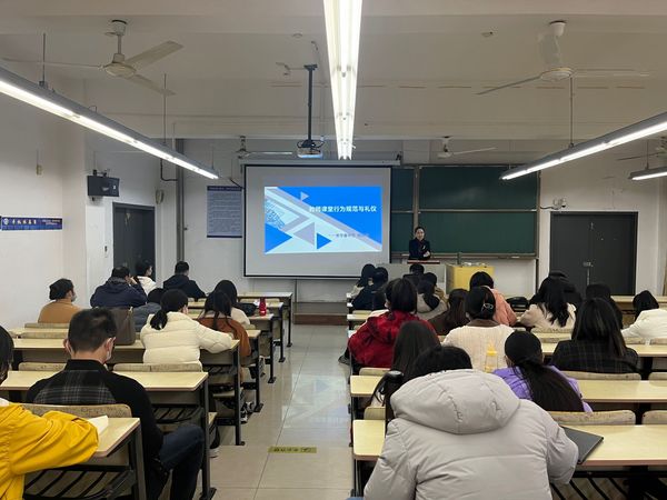 为不断提升课堂教学质量,规范课堂教学行为,加强师德师风建设,3月2日下午,教学督导室副主任储咏梅教授在知行楼C201教室开设“课堂教学行为规范与礼仪”专题讲座,近50名青年教师参加了本次讲座。
