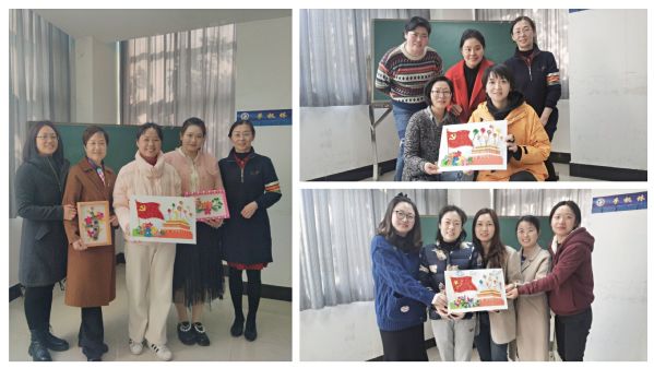 本次活动以“巾帼心向党”为主题,选择的图案是天安门城楼和飘扬的红旗,活动分三组以团队分工合作方式进行,有人负责卷纸,有人负责造型,有人负责粘贴,经过大家通力合作,每组都顺利完成了衍画作品。看着各自的劳动成果,女教工脸上露出像花儿一样的笑容,收获了满满的成就感和幸福感。