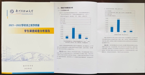 通过对本次问卷调查数据的统计结果进行深入分析,教学督导室编制了《2021—2022学年线上教学质量学生调查问卷分析报告》,采用“图表+文字”形式直观展示了各学院的线上教学实际情况,并结合学生评价对学校线上教学提出了诊断和改进建议。