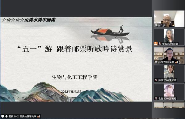 “山也美,水也美,山水之间流淌着中国美……”五一劳动节期间,生物与化工工程学院377名同学在悦耳动听的《中国美》歌声中,跟着邮票领略祖国大好河山。