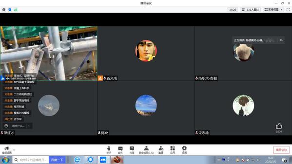 “云端”识岗实习直播环节最高峰时吸引了近400位师生共同观看,直播前驻工地教师、学院工管党支部宋志雄等同志进行了统筹协调,直播过程采取双主播模式,分别由江苏扬建集团有限公司驻场技术负责人孙峰工程师和主讲建筑施工技术课程的党员教师陈允同志担任主播,此外后台还有邵红才、谷文成、彭睦等6位专业教师在线辅助答疑。两位主播分别介绍了该工程中的新技术、新材料和施工技术难点,如梁模板的金属支架,盘扣式脚手架支撑、变形缝部位的橡胶止水带等。