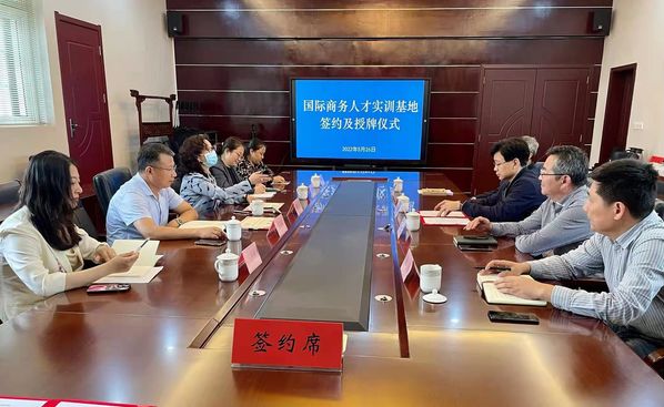 5月26日,扬州市商务局—扬州职业大学外国语学院国际商务人才实训基地签约暨授牌仪式在市商务局会议室举行。扬州市商务局局长王志海、副局长何炜、外贸处处长周正、外经处处长李林,我校外国语学院党总支书记刘苏闽,院长邵红万,副院长马道珍、王艳伟等出席会议,周正主持签约和授牌仪式,王志海和邵红万揭牌并分别致辞。