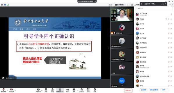 为进一步加强我校辅导员队伍建设,提高辅导员队伍专业化、职业化水平,按照《扬州市职业大学第七届辅导员节活动方案》安排,6月8日上午,由原学生工作部(处)部长袁新进做《不忘初心使命,做一名新时代有责任担当作为的高职教育人》专题线上讲座。