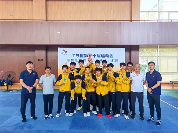经过5天的鏖战,我校男排以五战全胜的傲人战绩,夺得江苏省第二十届运动会高校部(乙组男子)排球比赛冠军,创造了以十连胜战绩夺冠的历史纪录。