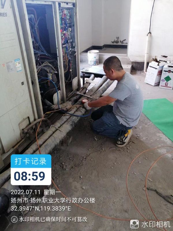 7月8日11:48分,“是后勤处吗,崇德楼510、506、311中央空调故障,请安排人员维修。还有,知行楼B404的中央空调不出风了!” 接到电话,相关人员立即与维保单位及报修人对接,了解设备情况、协调来校时间;顶高温、冒酷暑,奋战四天,终于排除了管道渗漏、电机不工作等故障。