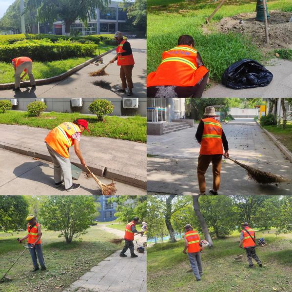 万杨物业职大项目部的绿化师傅和保洁们不畏惧高温,依然辛勤劳作在各自的岗位上,用滚烫的汗水,对“爱岗敬业”做出最好的诠释。绿化师傅身着黄色马甲,手持打草机穿梭在校园各个绿化带内,为了避免进入草丛被扎伤,他们都会穿两条裤子,炎热夏日的校园里、草地上、马路上随处都可以看见那抹“黄色”的身影。他们默默无闻,坚守岗位,不惧酷暑,一直保持着乐观心态。