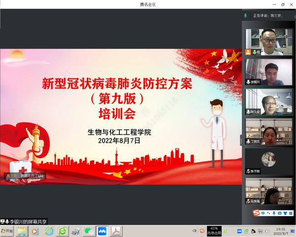 根据学校有关要求,自8月7日开始,生物与化工工程学院通过系列举措认真做好《新型冠状病毒肺炎防控方案(第九版)》的培训工作。