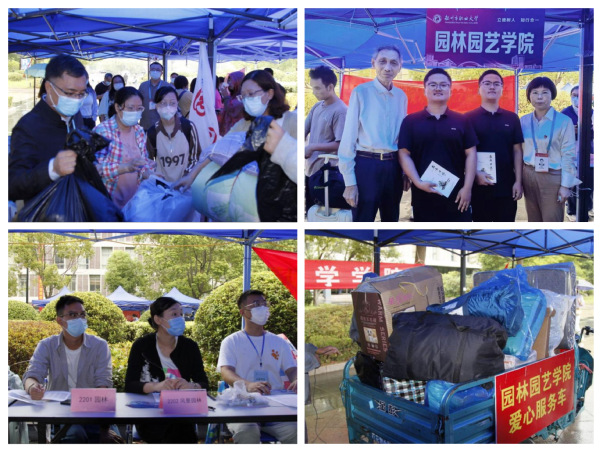 9月16日,园林园艺学院共组织了28名教师与44名学生志愿者为新生提供便利的迎新服务。志愿者们早早支好了棚子等待,为每一位新生答疑解惑、搬运行李等。在迎新现场,一对双胞胎兄弟吸引了大家的目光,据悉,两人的伯伯都是从事与农学相关的工作,兄弟二人选择了涉农相关的专业,也是一种传承。两兄弟还得到了由中国盆景艺术大师、江苏省非物质文化遗产“扬派盆景技艺”代表性传承人——林凤书大师亲笔签名的专著《盆景丛谈》一书。(陆幸福)