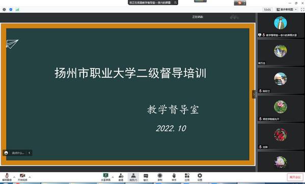 为进一步加强学校教育教学管理,完善教育教学质量监管运行机制,推进教学督导工作点面结合,形成校院两级教学质量保障工作齐抓共管、各有侧重的工作局面,教学督导室于10月13日下午对全校所有学院二级教学督导人员开展了线上专项工作培训。