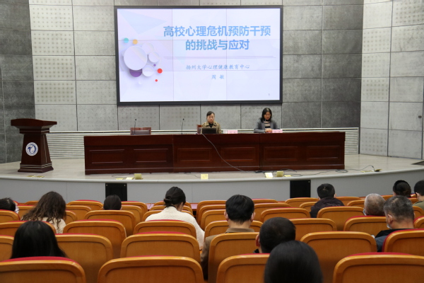 为进一步增强学工队伍对学生心理危机的识别、预防与干预能力,扎实推进我校心理育人工作,10月20日,党委学生工作部(处)举办了“高校心理危机预防干预的挑战与应对”讲座。此次讲座由扬州大学心理健康教育中心副主任周敏主讲,各学院党总支书记、副书记、学工办主任、团委书记、辅导员及学工部工作人员参加了此次培训。