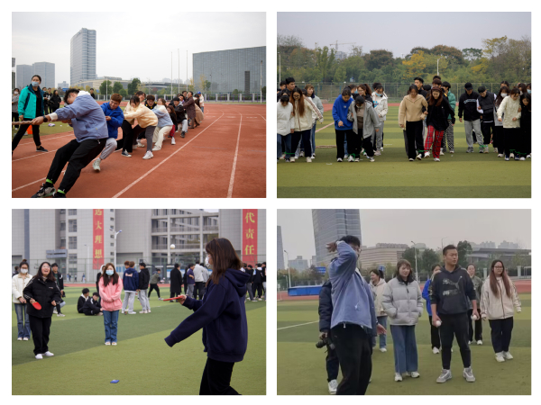 本次师生同乐会将传统的体育运动竞技比赛和趣味游戏相融合,开展了拔河比赛、两人三足、小组单人运乒乓球接力、钓鱼、沙包投准、竞速毛毛虫六个项目。赛场上,教师们满面笑容,精力充沛,同学们朝气蓬勃,活力四射,现场一片欢腾景象,掌声、笑声、喝彩声此起彼伏,老师与同学们互相鼓劲加油。师生选手们在活动中默契配合,通力协作、挥洒热汗,他们秉承着“友谊第一,比赛第二”的原则,在赛场上发扬顽强拼搏的精神,既赛出了成绩,又展现了管理学院师生的精神风貌。物流2101班杨天乐同学表示,看到平时在讲台上的教师在拔河比赛中跟学生一起拼尽全力的样子,真是有趣又暖心。