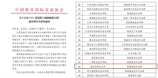 3月14日,中国教育国际交流协会公布了“TÜV莱茵数字创新赋能计划”建设单位名单,我校成为首批项目建设单位,建设专业群为智能制造。