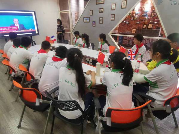 5月14日上午,翠岗中学40名学生和梅岭中学京华城校区50名学生来到我校笃行楼外国语学院江苏省中小学学生跨文化交际体验中心,参加中小学生跨文化交际职业体验活动。