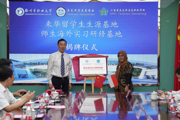 马顺圣回顾了我校与三宝垄Texmaco职业学校多年来的职业教育合作与交流历程,自2019年以来双方共同培养学历留学生,协同“走出去”企业培养本土化人才,在中印尼教育交流合作方面取得了一些成果。他表示,本次签约揭牌为双方多层次、多角度、多渠道密切合作带来了新机遇、提供了新动力。我校将始终秉持共商、共建、共享的基本原则,继续发挥学校专业和人才优势,全力支持合作交流项目,切实推进双方在学生培养、师资培训、专业建设等领域的合作,一道为深化职业教育国际合作交流做出努力。期待双方以此次合作为契机,进一步延续深厚友谊,深化交流合作,推动两校国际技术技能人才培养迈上新台阶,共同谱写中印尼人文交流新篇章。