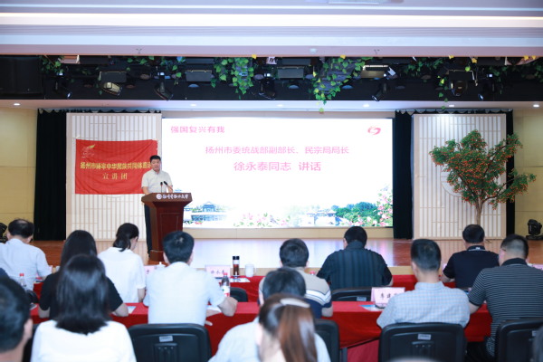 6月21日,扬州市铸牢中华民族共同体意识宣讲团首场宣讲活动走进我校。扬州市委统战部副部长、扬州市民族宗教事务局局长徐永泰,扬州市民族宗教事务局分管民族工作负责人廖勇,共青团扬州市委副书记(挂职)高宇,校党委副书记、副校长许金如及扬州市委宣传部、扬州市发改委、扬州市教育局等单位部门领导参加了本次宣讲活动。
