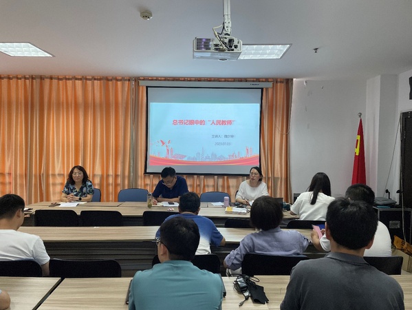 会上,学院党总支书记魏少婷以《总书记眼中的“人民教师”》为主题,分“广大教师责任重大、使命光荣”“把师德师风建设摆在首要位置”“教师要成为大先生”三个部分,带领全体教职员工学习了党的十八大以来,习近平总书记有关教育、教师队伍建设、思想政治教育等方面的重要论述。组织带领全体教职工观看了“七一勋章”获得者、全国优秀教师张桂梅的先进事迹视频。为充分发挥先进典型的示范引领作用,魏少婷还以身边人身边事为例,讲述了我校优秀教师代表扬州市师德模范沈桂登老师、退休仍然心系学生的朱捷教授、身残志坚坚持公益超10年的许文啸老师、坚持无偿献血20多年的王征远老师以及学院教学名师胡林岚和关爱学生的“慈妈妈”慈瑞梅老师等人的先进事迹,用鲜活动人的教书育人故事激励全体教师榜样就在身边、人人可学可做,让大家倍受鼓舞,感触颇深。