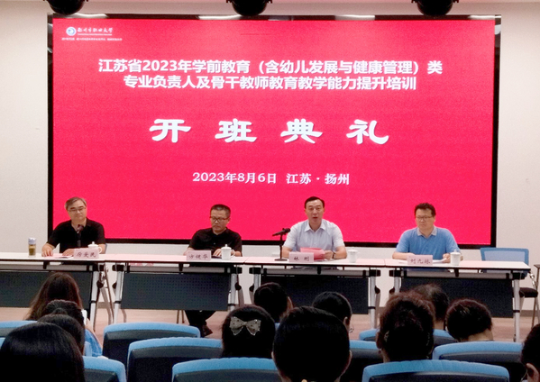 8月6日下午,江苏省2023年学前教育(含幼儿发展与健康管理)类专业负责人及骨干教师教育教学能力提升培训在我校师范学院音乐实训室开班。江苏省职业教育与终身教育研究所所长方健华,校党委副书记、校长林刚,师范学院领导班子成员和来自全省中等职业学校近40多名参培教师参加了开班仪式。开班仪式由师范学院院长厉爱民主持。本培训班是今年江苏省中职学校教师省培项目之一,历时8天,由我校师范学院承办。
