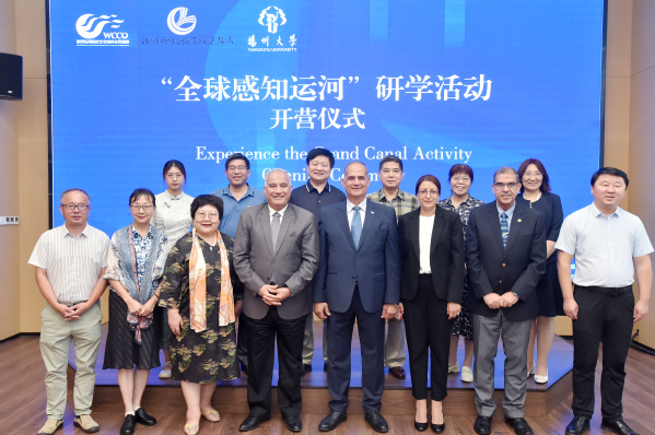8月14日下午,由世界运河历史文化城市合作组织(WCCO)精心组织的“全球感知运河”研学活动开班仪式在扬州科教集团科教培训中心举行。WCCO荣誉秘书长、国际交流专委会主任邓清,埃及苏伊士运河大学孔子学院外方院长哈桑•拉杰布(Hassan Ragab)等出席仪式并致辞。我校国际交流学院院长沐卫萍、党总支副书记刘鎏、教师代表及来自印度尼西亚、柬埔寨、南非、巴基斯坦、赤道几内亚的24名留学生代表受邀参加了本次活动。