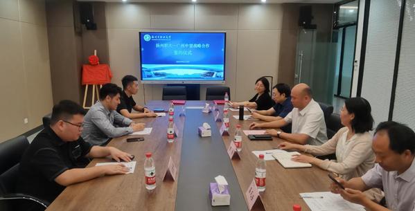 随后,吴书安和辛旭共同为扬州市职业大学“国产工业软件开发测试中心”揭牌。学校发规处处长袁刚与广州中望集团区域经理郭浩鹏代表双方签署校企合作协议书。根据协议内容,双方将在创新人才培养模式、双师双能型教师团队、校企双元课程与教材、多功能产教融合基地、共同建设国产工业软件开发测试中心、共建技能大赛中心、智能建造产业学院建设等11个方面加强校企合作,共同研究实践教学改革,推进校企深度融合。