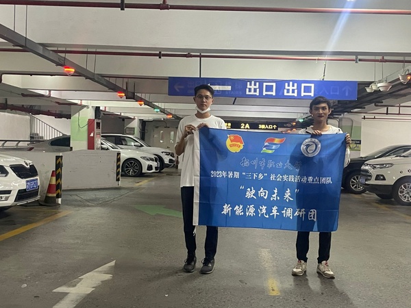 市场调研,为科技赋能。电汽学院组建的驶向未来——新能源汽车市场调研团队分别走进扬州、泰州、宿迁等城市的新能源汽车销售处或售后服务处,就新能源汽车销售情况、消费需求等方面进行调研,并对消费者关注的电车续航、安全等问题进行科普。“比亚迪汉续航里程600Km,快充时间仅需1.5小时,电费金额在80元左右,汽车半年保养一次费用在100多元……”汽车2101班王宇航感慨道。通过此次调研,团队成员对新能源车上的新科技有了更深刻的认识,对后续专业课程的学习做了很好的铺垫,同时通过对身边人的宣讲,对新能源车的发展起到积极推动作用。