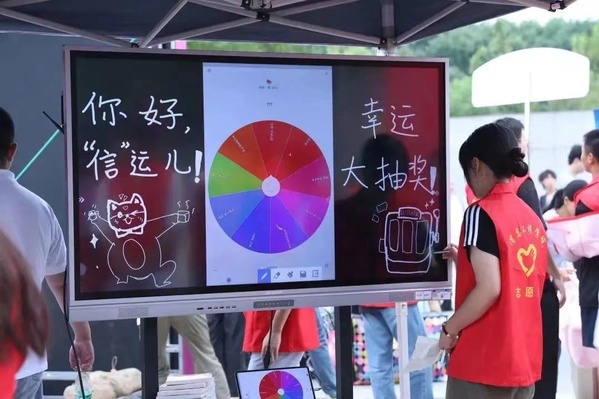 除了集体生日会外,本次迎新工作中,信息学院还推出了“你好,‘信’运儿”系列活动。新生在报到现场参与幸运抽奖,奖品丰富多彩,富有学院特色,有党史教育书籍、学习笔记、全院老师精心准备亲自书写的寄语贺卡等,尤其“书记请我吃午饭”“院长送我去宿舍”的奖项设置,让获奖新生惊喜异常。学院党政领导亲自帮新生提行李送其到宿舍、在食堂请新生及家长吃午饭,让新生及家长进校之处就能感受到学院温暖大家庭的良好氛围。