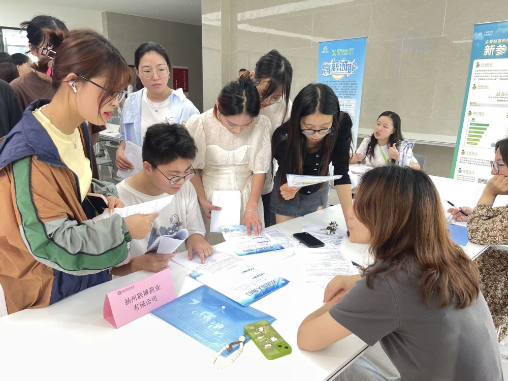 近日,学校在科创大楼就业大厅举办“二分明月·才聚扬城”2023年秋季校园医药专场招聘会,党委委员、副校长花军出席了活动。扬州联博药业有限公司等10余家企业参加,提供岗位33个,招聘人数238人。