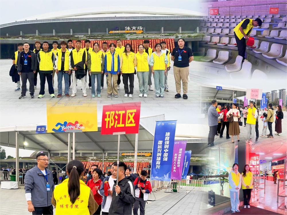 此外,在体育公园中心场馆内,身穿黄色马甲的体育学院志愿者也是一道亮丽的风景线,他们在入口处引导队伍进场,在观看席分发小红旗、引导观众就坐,在他们的协助之下,现场秩序井然,展现了扬州职大体院学子志愿服务风采。