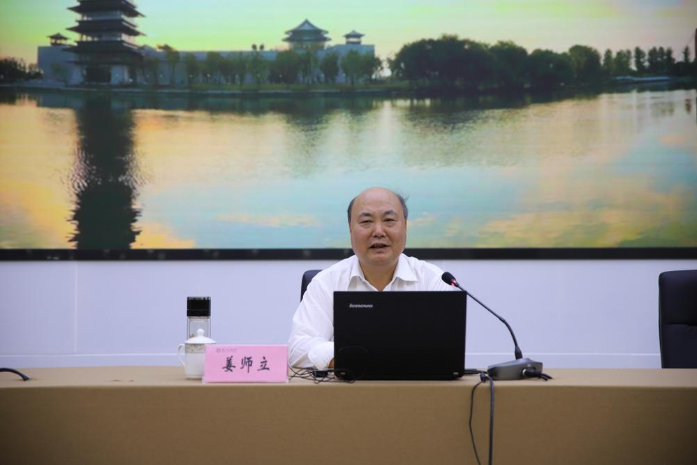 姜师立首先向来到历史文化名城扬州求学的新同学表示欢迎,随后详细介绍了大运河的概念与价值、扬州运河文化等多个方面的内容,并以详实的资料回答了中国大运河何以获准列入《世界遗产名录》,更从大运河对文学创作生产、传播、发展的作用出发,以历代与大运河密切相关的名家名作为例,阐释了大运河诗歌、散文、小说、戏剧等多个文学类别的发展全过程,勾勒出运河文学的肌理,旁征博引,妙语连珠。