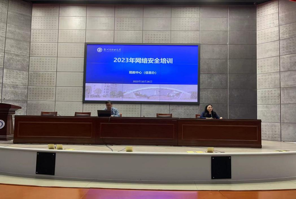 为进一步提升网络信息安全意识与防范能力,增强网络安全、数据保护观念,规范我校数据处理活动、保障数据安全,提升网络安全防护技能,近日,现代教育技术中心(信息办)在映月学术报告厅举办2023年网络安全培训会,各部门、学院的信息安全秘书参加培训,信息化办公室桑静老师主持会议。