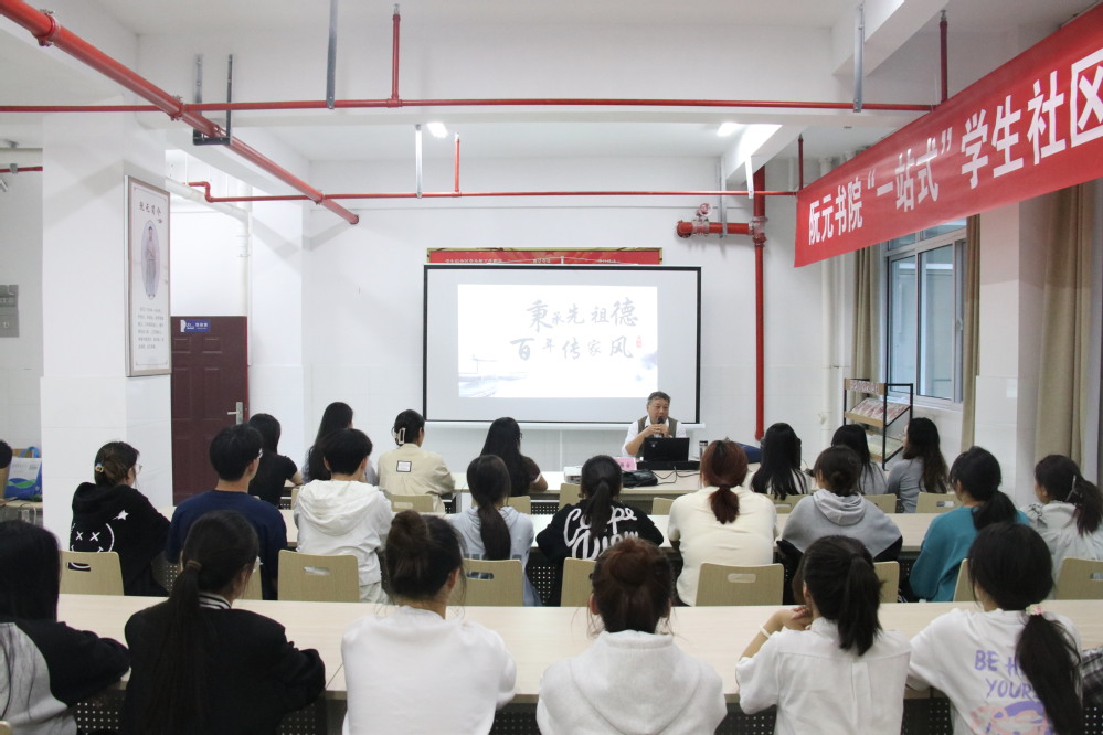 揭牌仪式后,学院邀请阮锡安参与社区建设,与学生们分享阮元的故事和经验,为新一代的成长提供宝贵的指导和支持。阮锡安先生为同学们做了精彩的文化讲座,他从阮元的生平、思想、著作等方面介绍了阮元文化的内涵和特点,并结合习近平总书记关于文化自信的重要论述,分析了阮元文化对当代青年的启示和价值。