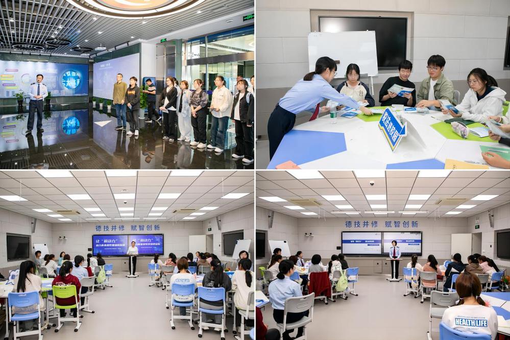 “走出去”。我校师生代表走进江苏智慧税务体验中心参与税费体验活动。以“税务体验师”的身份了解税务、参与税务,提高了学生对税收工作的认同感和税法遵从度。扬州市税务局智慧税务青年代表介绍智慧体验中心普法教育区、智慧办税区、“慧感知”青税巾帼工作室等区域,推动依法诚信纳税观念在师生心里“生根发芽”。