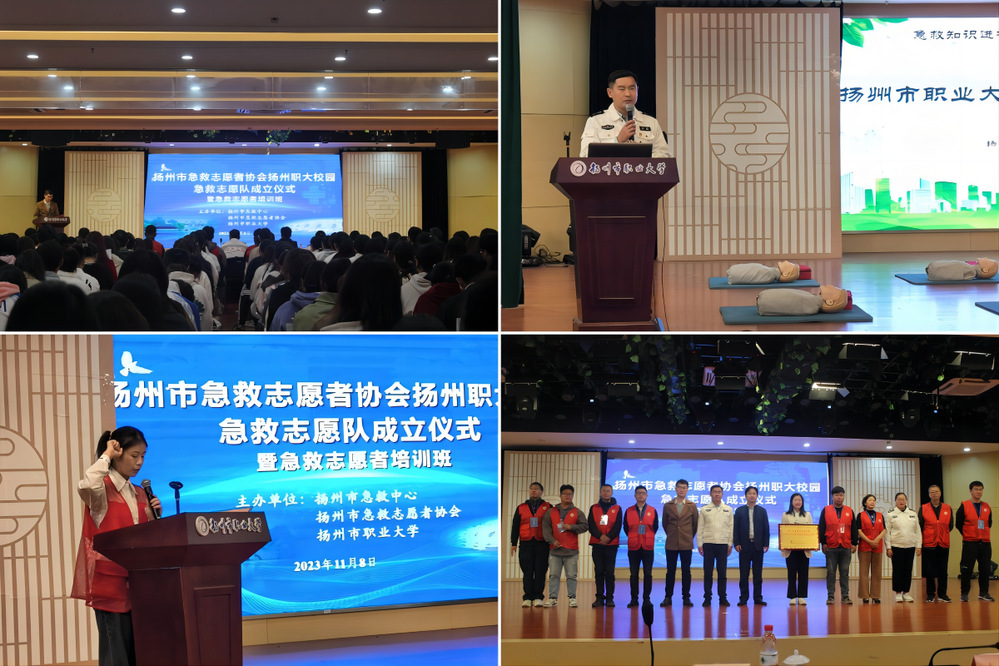 近日,在全国消防日即将来临之际,扬州市急救志愿者协会扬州市职业大学校园急救志愿队正式成立。扬州市急救中心副主任、扬州市急救志愿者协会副会长秦兆亮,扬州市急救中心科教培训科科长、扬州市急救志愿者协会秘书长汪茂胜和校团委挂职副书记王兆辰、金晶出席了本次成立仪式。