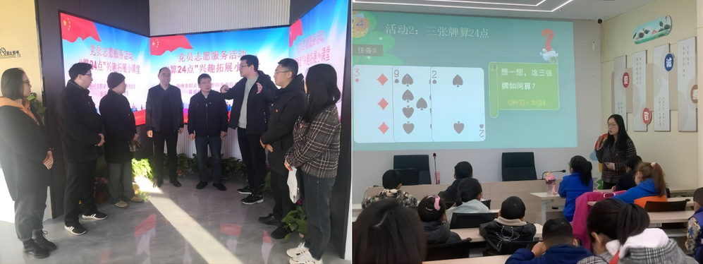 针对社区报名学生大部分是小学二、三年级的情况,学院志愿者经过讨论,结合二年级的孩子已经从加减法的学习进入到乘除法的学习,三年级孩子已经学习了四则混合运算,决定将“24点”游戏引入节假日拓展课堂。“24点”是一种伴随许多孩子成长的数学游戏,简单易学、健脑益智、常玩常新,深受众多孩子和家长的喜爱。