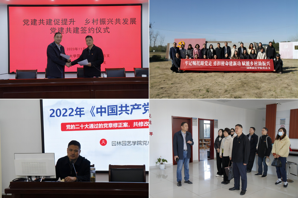 “江苏省特色田园乡村”仪征市凌东村党总支书记王明忠介绍,凌东村现有25个村民小组,党员68人,全村一直坚持走绿色农业发展道路,致力于把凌东村建设成为“宜居宜业宜游”的美丽乡村。园林园艺学院5个专业与美丽乡村建设工作密切相关,未来党员师生赋能乡村振兴大有可为,本次村校党组织党建结对共建签约,将发挥党建引领作用,形成资源整合、优势互补、共建共享的党建合力,推动乡村振兴,共谋发展。园林园艺学院党总支书记周忠在凌东村党群服务中心为大家上党课,详细解读了《中国共产党章程》,全体党员认真学习,收获颇丰。