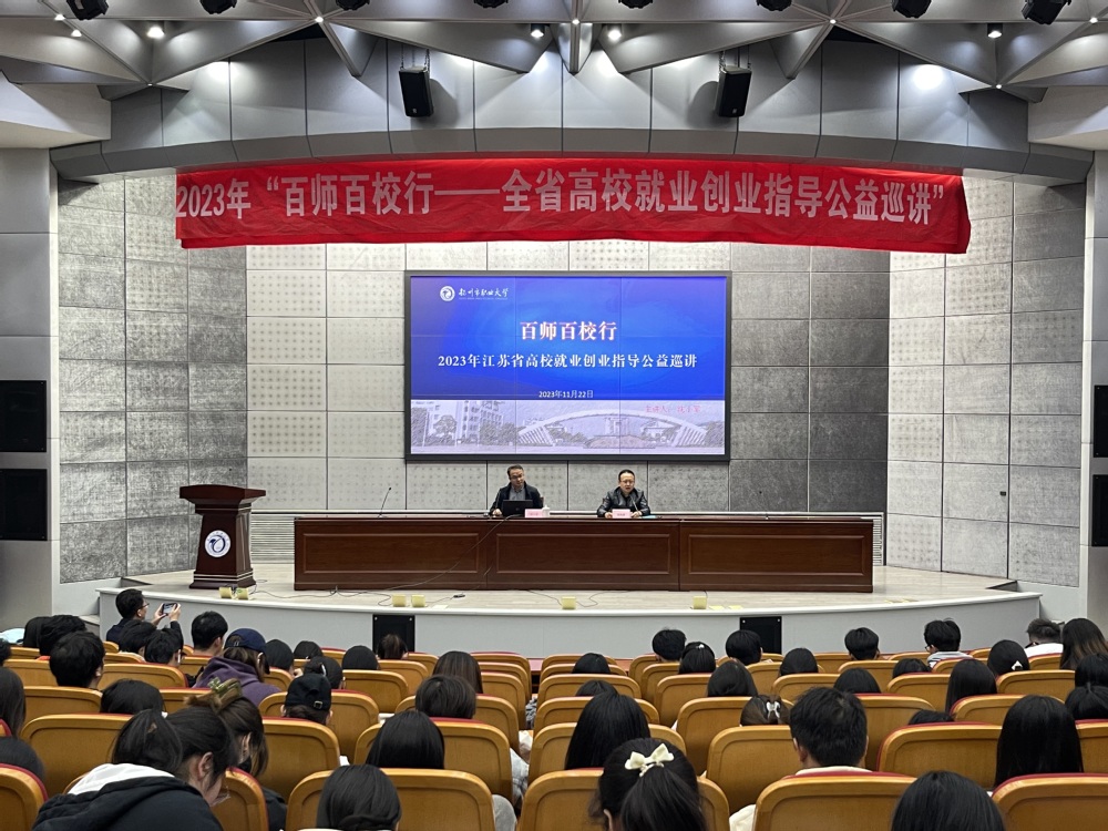 11月22日,由江苏省高校招生就业指导服务中心主办、我校招生就业处承办的2023年“百师百校行”高校就创业指导公益巡讲活动在学校映月报告厅举行。省大学生就业创业指导专家、南京机电职业技术学院就业(创业)指导服务中心主任沈小军应邀为我校240余名毕业生带来了一场精彩讲座。