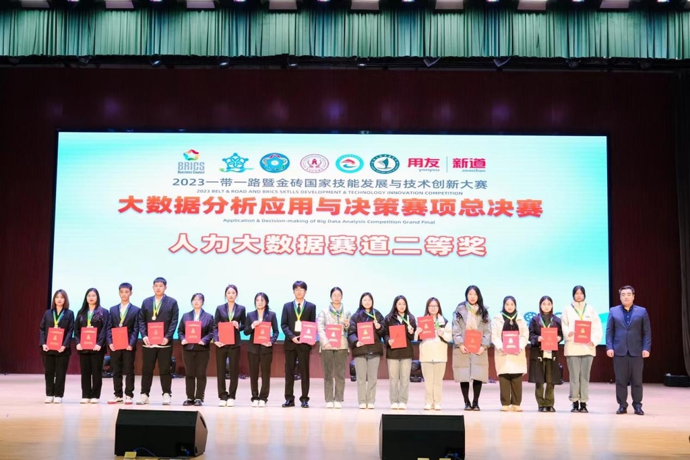 近日,2023一带一路暨金砖国家技能发展与技术创新大赛大数据分析应用与决策赛项全国总决赛在驻马店职业技术学院落下帷幕。我校人文学院杨楠、姜艳老师指导的人力资源管理专业22级学生左成艳、孙思佳、张芝未、韦艺团队历经个人技能比拼、团队案例分析和现场答辩等多轮竞技,最终斩获人力大数据赛道全国二等奖。两位指导教师获优秀指导教师奖,我校荣获优秀组织奖,4名参赛队员还获得“用友BIP技术工程师”认证证书。