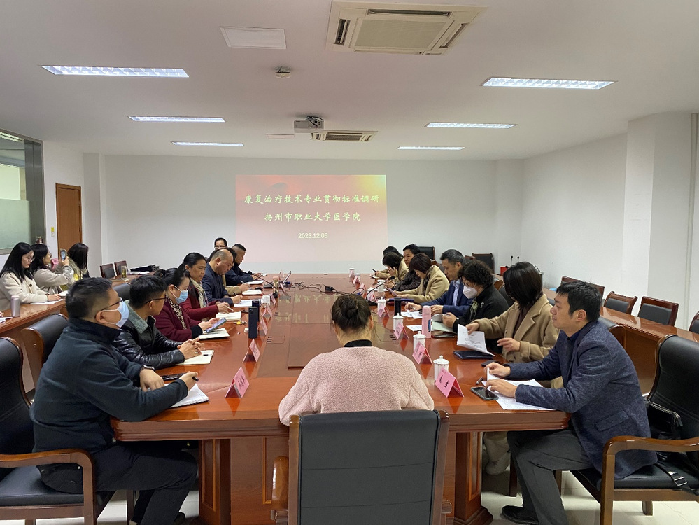 近日,江苏省卫生健康职业教育行业指导委员会专家组莅临我校,调研指导医学院康复治疗技术专业贯彻标准情况。江苏医药职业学院副校长高璀乡、苏州卫生职业技术学院副校长肖波等行业内专家一行9人组成调研组。校党委委员、副校长吴书安,医学院党政班子成员、康复治疗技术专业全体老师等参加了本次调研工作。